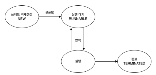 - 쓰레드는 실행과 대기를 반복하며 run() 메서드를 수행한다.